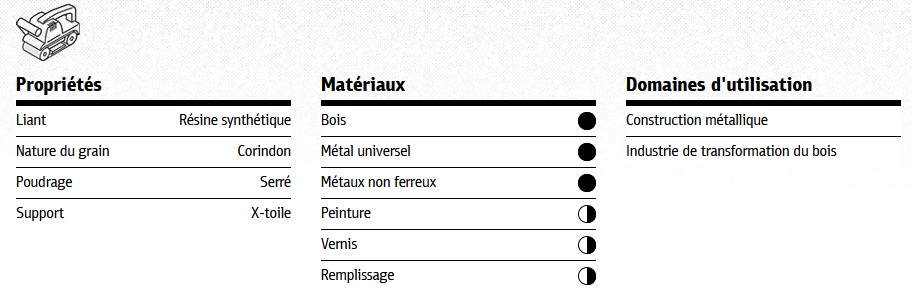 Cette bande abrasive pour le bois est donc un véritable produit universel. Elle est conçue pour une utilisation sur des segments de marché tels que l'industrie de transformation du bois et du métal, ainsi que dans le commerce. La bande abrasive pour le bois est livrée sous forme de bandes abrasives et elle peut être utilisée sur des machines comme la lime à bande manuelle ou la ponceuse manuelle. Le produit est disponible en nombreuses granulométries. Les bricoleurs et les simples amateurs bénéficient également des propriétés exceptionnelles de ce produit-phare, pour ses utilisations.