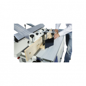 Les opérations de tenonnage sont simples, grâce au chariot en aluminium, à la vitesse dédiée et au casque de protection spécial (en option).