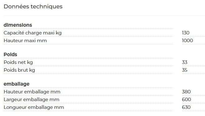- 9 Rouleaux charge maxi: 130 kg largeur: 500 mm