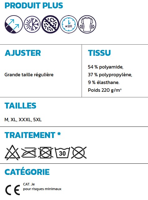 PANTALON THERMO ACTIVE COLORIS NOIR 54% POLIAMIDE 37% POLYPROPILENE 9% ELASTHANNE TAILLE XXXL