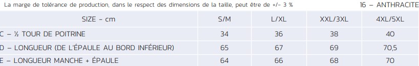 TAILLES : S/M (42-46), L/XL (48-52), XXL/3XL (54-56), 4XL/5XL (58-60)