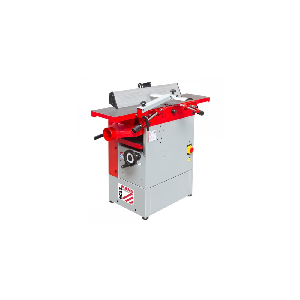 400 Volts. Guide de dégauchissage ajustable en aluminium, inclinable à 45º. Tables de dégauchissage en fonte gris pivotantes, avec lèvres antibruit. Bâti mécano-soudé, rigide et robuste, assure une grande stabilité.