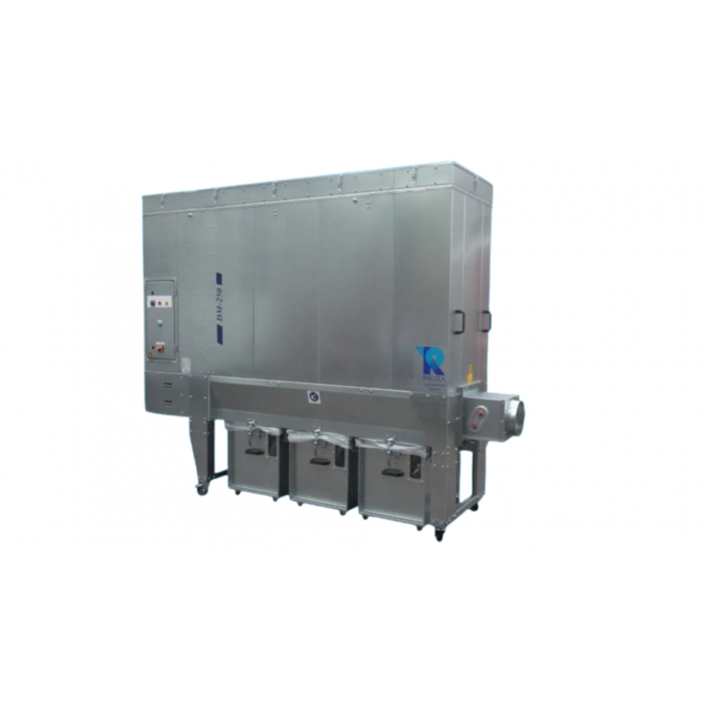 Unités d'extraction intérieures Le DM-250 est une unité d'extraction principalement utilisée dans les petits ateliers de menuiserie, travaillant avec des machines standard (avec un maximum de deux buses d'extraction par machine).